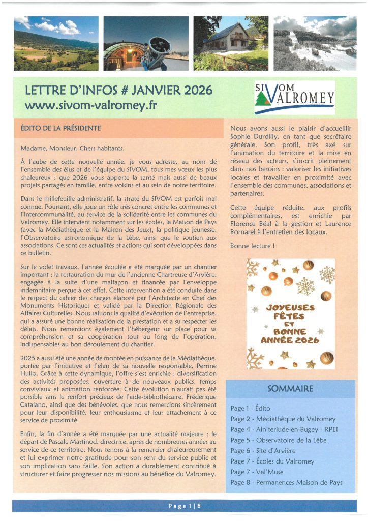 LETTRE D’INFOS JANVIER 2026 SIVOM DU VALROMEY