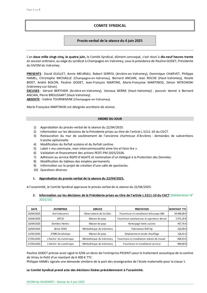 Procès-verbal du Comité Syndical du 04/06/2025