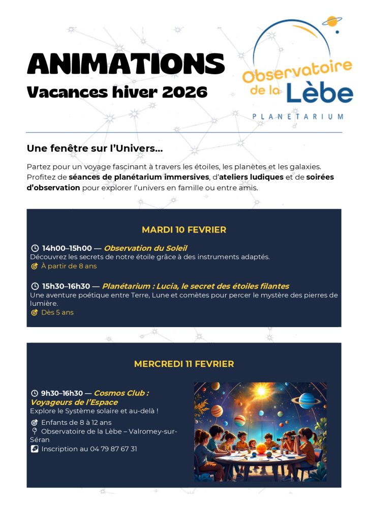 Vous trouverez ci-après le programme des activités proposées lors des prochaines vacances scolaires par l’Observatoire…