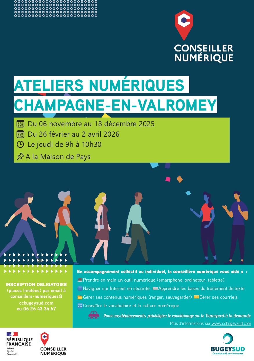 Inscription obligatoire (places limitées ) par email à conseillers-numeriques@ccbugeysud.com ou au 06 26 43 34 67