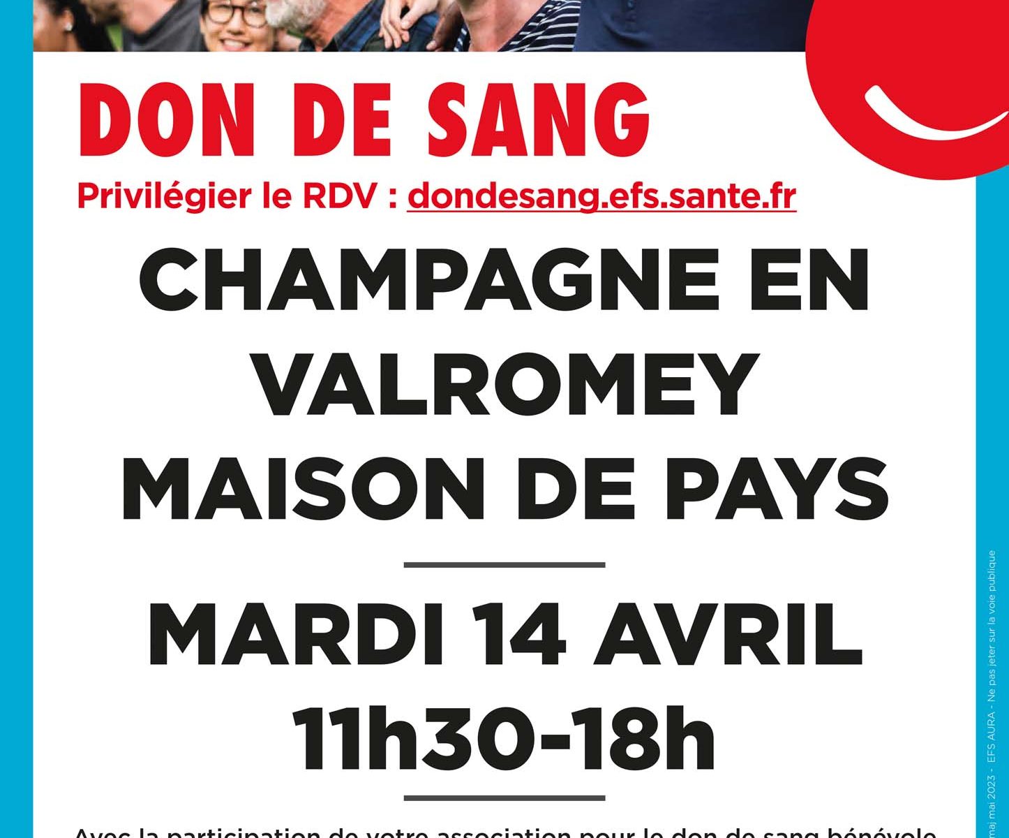 L’Amicale des Donneurs de Sang du Valromey et l’EFS de Bourg-en-Bresse espèrent que vous viendrez nombreux et vous remercie d’avance de votre démarche altruiste et votre générosité !